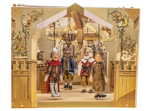 Der zweite Teil der Ausstellung widmet sich Toblers Marionettentheater – einer für ihre Zeit technisch ganz raffiniert ausgestatteten Heimpuppenbühne aus dem späten 19. Jahrhundert. Konstruiert und bespielt wurde sie von den Söhnen des aus dem appenzellischen Trogen nach München ausgewanderten Kunstmalers und Illustrators Victor Tobler. Die jungen Brüder Georg und Justus bauten Rittersäle und Räuberstuben originalgetreu im Miniaturformat nach und erweckten sie mittels Marionettenfiguren und Bühnentechnik zum Leben. Nebst der Originalbühne sind Kulissen, Regiebücher, Theaterplakate und Figuren mit allerlei Zubehör aus dem reichhaltigen Fundus zu sehen.